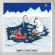 Papais noeis dizem, ""!@#$*% Mudança Climática", enquanto seu trenó afunda em alguma água e renas pendura em um gelo flutuando com um urso polar.