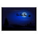 Papai Noel e sua rena voam sobre a lua no céu azul escuro com estrelas. www.giftideas505.com