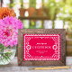 Esse elegante, porém moderno, carpintor picado inspirado na recepção de casamento apresenta um belo quadro de ornamentado em branco, um fundo rosa-quente colorido e uma tipografia festiva. Personalize este modelo como um sinal de mesa para obter favores, guia, menu, buffet, etc. O tamanho padrão é de 5" x 7", que ajustado o excelente em um quadro de foto de tamanho padrão que pode ser colocado em uma mesa. Esta elegante, porém moderna design é uma escolha fabulosa para um casamento de Latinx ou para o casamento de destino do México. Todo o texto é personalizável, basta clicar no botão "personalizar" para o texto. Veja a coleção para mais peças de coordenação!