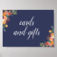Paprika Burgundy - Sinal de Casamento Floral Cartões e Presentes Projetado para combinar com nossa coleção Floral Paprika Burgundy, este elegante cartaz floral permite que os convidados saibam onde largar suas cartas e presentes. Personalize com três linhas de texto personalizado em letra de escrita de caligrafia, enquadrado por buquês de canto com uma bela paleta de arrombada, ouro, coral, pincel e lenços verdes com fundo azul marinho.