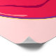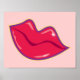 Um par de lábios vermelhos brilhantes com um pouco de brilho e um contorno roxo e amarelo. Os destaques brancos sutis dão-lhe um olhar brilhante. Fundo rosa macio.