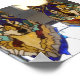 Um par de lobos, feitos de vidro manchado, observando cada movimento que você faz.