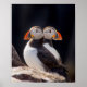 Par de alfinetes olhando em direções opostas em rochas nas ilhas Farne, Northumberland. Fotografia de excelente para uma legenda.