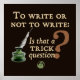 Apenas para todos os escritores lá fora, esta paródia do "Ser ou não ser" de Hamlet é retrabalhada como "Escrever ou não escrever: é uma pergunta difícil?", completa com a água e o pote de tinta de Elizabethan.