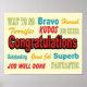 Design gráfico de parabéns retrorados e coloridos perfeito para todos os tipos de celebrações: graduação, campeonato, exames, testes, novo emprego, promoção, novo bebê, adoção, casamento, casamento, aniversário, escola de comércio e muito mais. Muito bem, Bravo, Hurrah, Extraordinário, kudo, grande alegria, parabéns, excelente trabalho, excelente, soberbo, trabalho bem feito e fantástico!