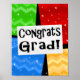 Abstrato gráfico divertido e festivo com vermelho, amarelo, verde e azul vibrantes. Felicito o formando a um trabalho bem feito. Crie algum entusiasmo com favores modernos e modernos modernos e modernos. Design Copyright © CustomInvitesOnline.com