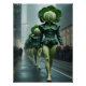 Uma imagem surreal e provocadora que mostra uma linha de figuras vestidas em figurinos elaborados com o tema repolho andando por uma rua úmida da cidade. Cada figura veste um grande e realista chapéu de repolho e uma folha verde que se estende pelas pernas, como uma fusão de humanos e vegetais. As figuras são vistas de um ângulo ligeiramente baixo, com altura, prédios de cinzas ao fundo e espectadores observando nas calçadas. A atmosfera parece um pouco úmida e nebulosa.