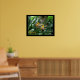 Mostrado no papel poster mate matte, este pássaro do paraíso se espalha por suas asas em cores para deleite de blues reais, roxas, verdes e amarelos. Fronteira negra.