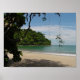 Esta poster mostra uma fotografia de um paraíso na praia localizado na Costa Rica. Areias brancas, mar azul e árvores tropicais verdes fazem você sonhar em relaxar as férias.