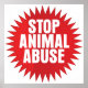 Muito ousado. Parar presentes de abuso animal com letras brancas grandes e fundo vermelho estourado. Ajudar A Pôr Fim Ao Abuso De Animais Através Da Consciência.
