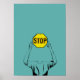 Esta ilustração minimalista mostra uma figura sem rosto vestindo uma camiseta simples, segurando um sinal amarelo brilhante na frente de onde estaria sua cabeça. O fundo é um azul-claro sólido, enfatizando a simplicidade e focando no sinal. O sinal de stop simboliza uma pausa, uma mensagem para parar, ou uma barreira conceitual, criando uma narrativa visual impressionante e direta.