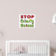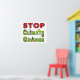 O design Stop Climate Change mostra a mensagem com um grande STOP vermelho e letras verdes embaixo. As letras contêm gráficos relacionados às mudanças climáticas, incluindo energia eólica e solar, água, picos de gelo, árvore, abelhas e medidor de temperatura. Um gráfico atraente e divertido para fazer o ponto.