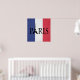 Ilustração de design de texto de Paris com decoração em Torre Eiffel sobre fundo de bandeira francesa de moagem