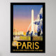 Viagens vintage de poster para Paris mostrando a fonte e o obelisco no Place de la Concorde.