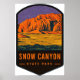 Um crachá do parque de estilo vintage do Parque Estadual do Canyon de Neve com arenito Navajo vermelho e branco das Montanhas Vermelhas na Reserva do Deserto dos Cliff Vermelhos, em Utah, Estados Unidos.