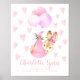 Bonitas estatísticas de bebês para uma menina com buquê de balão e coelho doce rodeado por corações cor-de-água cor rosa. Itens correspondentes disponíveis em nosso compro.