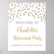 Poster de festa de retirada de texto personalizado com prata e confete dourado.