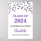 Poster de festa de formatura de texto personalizado com confete preto e roxo.