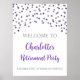 Poster de festa de aposentadoria de texto personalizado com confete prateado e roxo.
