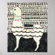 Partido Llama II de Chariklia Zarris. Apresenta uma lama com adornos coloridos contra um fundo geométrico e divertido.