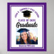 Este moderno parabéns poster de fotografia roxo com formando apresenta a tipografia da sua universidade ou nome da faculdade para a classe de 2025. Personalize com o seu ano de graduação próximo ao guião manuscrito chic e ao boné de formando preto para decoração personalizada de festa de formatura do excelente juntamente com a fotografia do seu aluno.