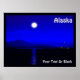 Moonrise como um barco de pesca atravessa a passagem de Dentro do casaco do Alasca. Leitura personalizável de texto, "Alaska" também é exibida. Adicione seu próprio texto adicional.