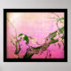 Póster Pássaro de PRIMAVERA e árvore florida Rosa Fuchsia