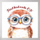 Adorável coruja balançando óculos enormes e charme geeky.