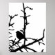 Este poster de arte contemporânea apresenta um padrão abstrato moderno preto e branco de uma silhueta Junco de olhos Escuros (Junco hyemalis) empoleirada em um galho nu alto numa árvore. Este pássaro é, na verdade, um tipo pequeno, cinza e pardal branco.