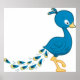 Poster Pássaro Pavão Azul Desenho Animado