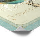 © Sue Schlabach/Wild Apple. Uma imagem vintage de um pássaro virado para a esquerda. Esta imagem está cercada por uma fronteira azul, e tem algumas palavras francesas escritas nela.