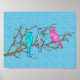 Poster Pássaros Applique em uma ramificação, Sky Blue Mul