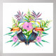 Póster Pássaros tucanos tropicais e flores rosa