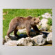 Urso-marrom (Ursus arctos) visto do perfil que caminha sobre as rochas perto da água