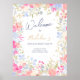 Bem-vindos convidados para a sua celebração com o nosso Sinal de Poster de Boas-vindas do Jardim Romance Floral. Este cartaz encantador apresenta delicada cor d'água floral pastel pintada manualmente, em rosas claro, cinzas, lavanda e um elegante guião de pincel e falso confetti dourado, definindo um tom delicioso para o seu evento. Seja uma festa de formatura ou outra ocasião especial