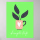 Simples estilo moderno de design com uma planta de chá e pote. Homer e fofo. Design de vida simples e divertida. Verde, cor-de-rosa e cinza em cores pastel.