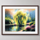 Pastel Drawing Garden Pond Weeping Willow Tree A proporção é de 4:3.
