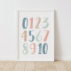 Apresente o seu filho aos números com este poster de aquarela com letra manual. Decorra uma parede no berçário, no quarto ou na sala de jogos da sua criança com este impressão educacional para encorajar a aprendizagem todos os dias.