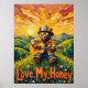 Este trabalho de arte imaginativo mostra um urso, um verdadeiro artista "Pastoral Pickin" com capacete de bombeiro e óculos de sol, tocando captivelmente um violão acústico em um campo de flores silvestres. Um vale beijado ao sol e colinas rolantes formam o pano de fundo pitoresco, com um pote de mel perto. A vibrante e texturizada cria uma atmosfera poderosa e caprichosa, fazer esta cena do "Love My Honey" verdadeiramente inesquecível.