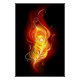 Pena de pavão brilhante feita de fogo e chamas sobre fundo negro.