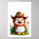 Um pato de desenho animado vestindo um chapéu e rodeando com flores. O pato está sorrindo e parece feliz. Esta é uma arte gerada por IA.