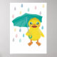 Poster Pato Fofo Com Guarda-Chuva Na Chuva Arco-Íris
