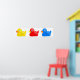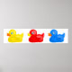 Figura de desenho animado bonito de três patos coloridos diferentes flutuando juntos em fileira. Imagem disponível em vários presentes e produtos.