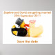 Dois patos de borracha amarelos fofos vestidos como noiva e noivo. Dois patos beijando cartão de aviso com texto personalizável para sua mensagem especial, nomes, aviso de data ou adicione sua própria imagem.