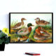 Lindo prato litográfico, de cor manual, de um grupo de patos descansando na lagoa. Digitalmente melhorado para trazer de volta suas cores vibrantes. Data impressa nos anos 1900.