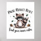 Respire fundo e encontre sua calma interior com essa charmosa pausa. Refletir. Reinicie.' design com um guaxinim meditante em um ambiente pacífico. Este trabalho de arte adorável e tranquilo é perfeito para praticantes do pensamento, amantes de ioga e entusiastas da natureza que acreditam no poder da reflexão e do autocuidado.
