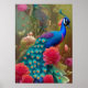 Poster Pavão Azul no Jardim de Rosa de Coração Rosa
