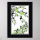 O pavão negro, verde e a cereja florescem um impressão poster personalizado, com uma silhueta negra e verde de um pássaro de pavão e uma árvore-sakura-cereja, com flores adoráveis em fundo branco e uma borda negra ao seu redor. Um design elegante com um talento asiático oriental.