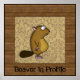 Um castor de desenho engraçado em um perfil em uma armação de madeira. Arte digital original de Taylor Addams.