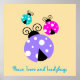 Alguns bichos-da-joia e joelhos bonitos. Estas joias brilhantemente coloridas têm corpos redondos deliciosos com bolinhas brancas bonitas na parte de trás. Suas cabeças estão em forma de meia lua em preto e têm bonitos apalpadores em forma encaracolada. Estas 3 joias são pintadas de roxo brilhante, rosa e azul. O texto diz paz, amor e joias em uma fonte azul brilhante escrita à mão. Estilo bonito!